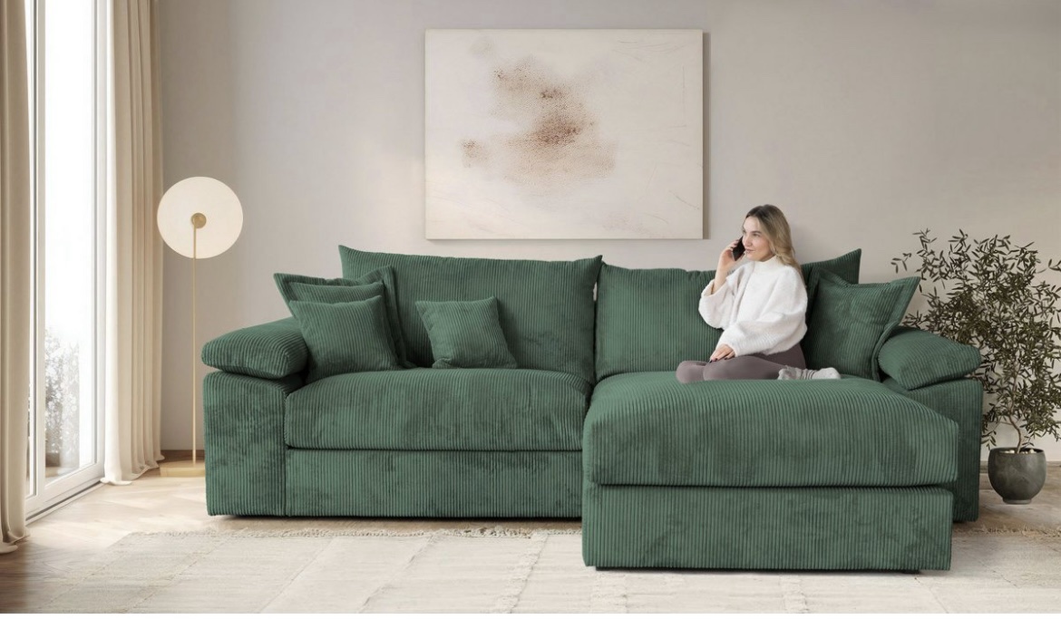 Ecksofa Mega-Sofa, Cord Federkern XL L- Form, B: 246 cm