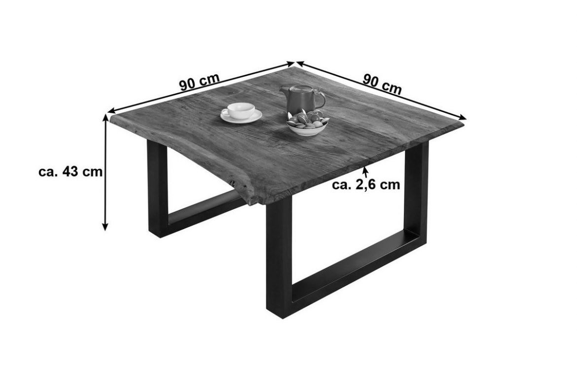 CouchtischVollholz Akazie 90 x 90 x 47 cm