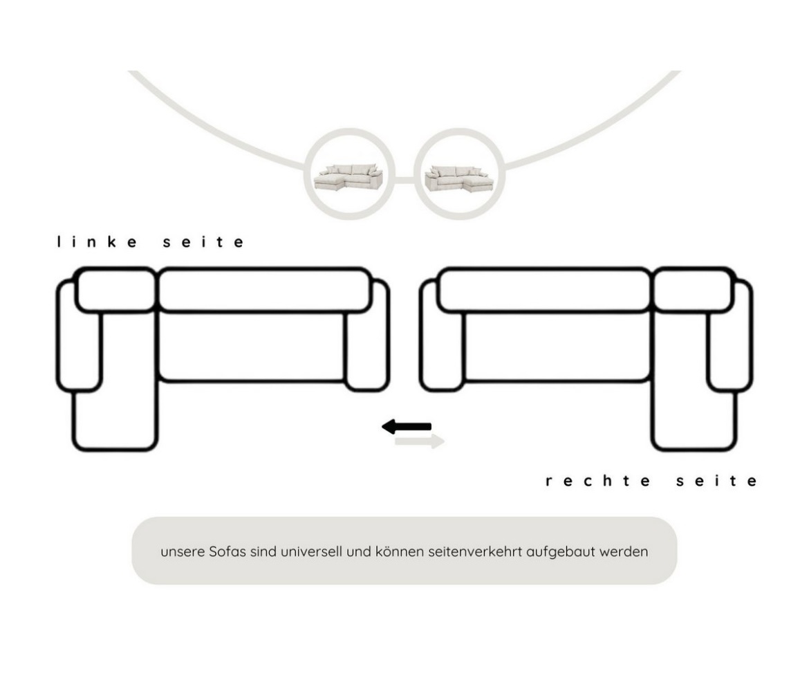 Stellvariante Recamiere beidseitig montierbar