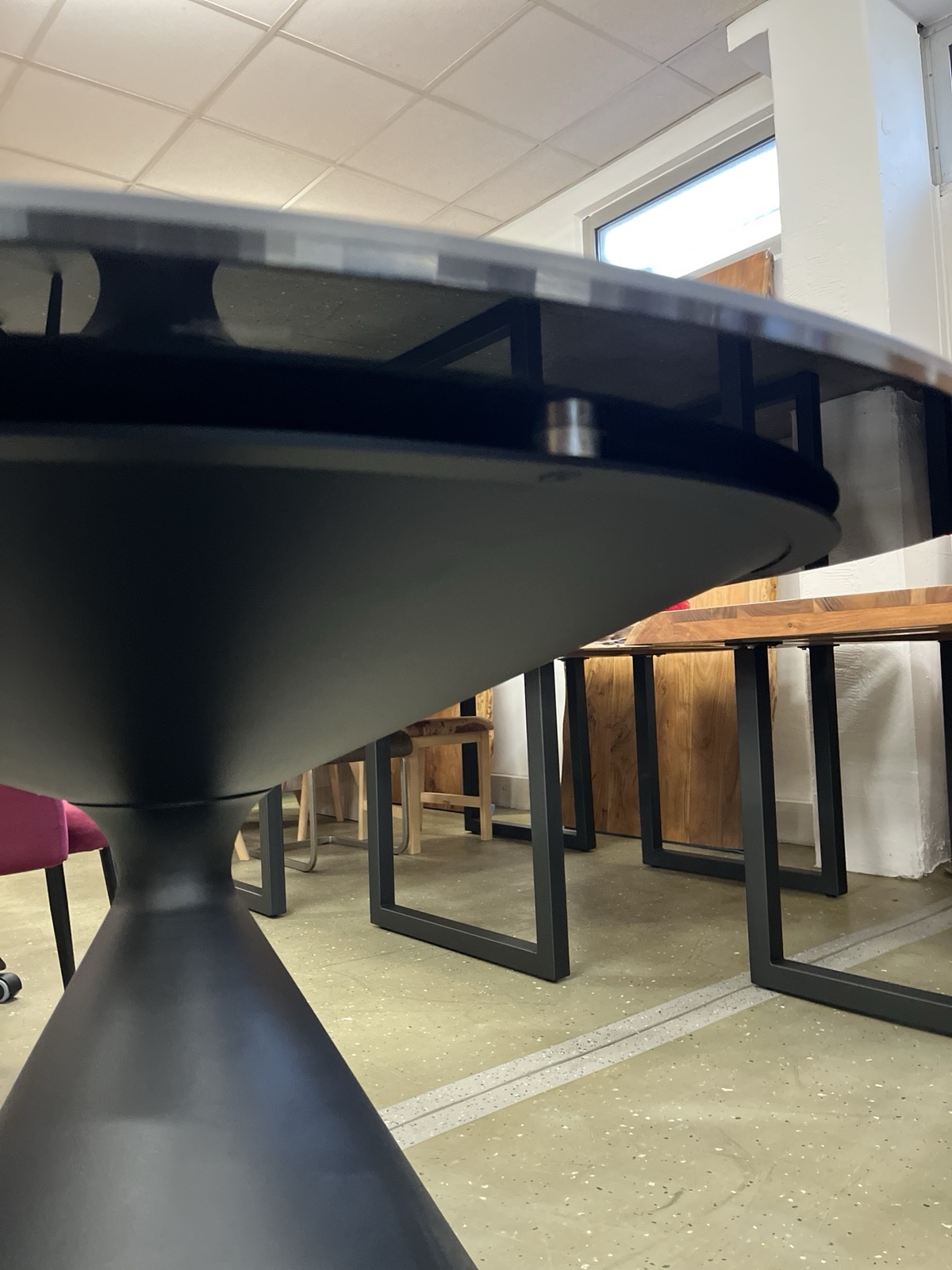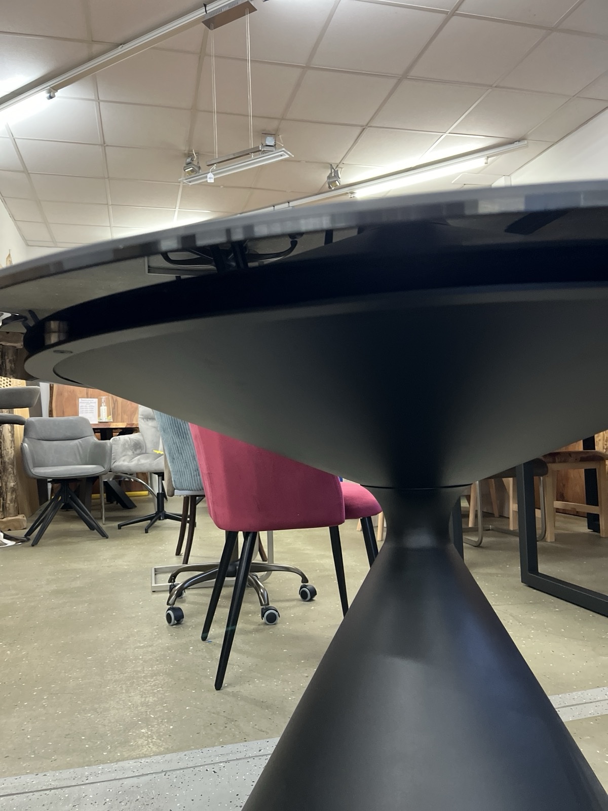 Der 119 cm lange Tisch bietet bequem Platz für 4 Personen, aber der Sockeltisch kann bis zu 5 Personen aufnehmen.